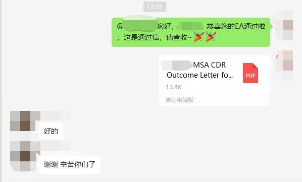 收到補件通知后,和客戶仔細溝通完成素材收集后,1周內準備并完成了補件,職評得以順利通過。