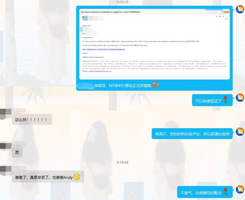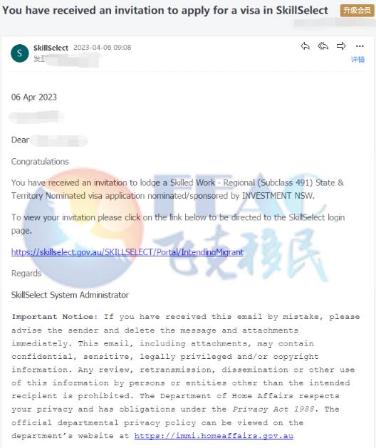 申請職業: Financial Investment Adviser ANZSCO Code 222311;EOI 70分(基礎分55分+州擔保15分);客戶2023年2月22日遞交EOI,2023年3月29日預獲邀;2023.4.3遞交提名,2023.4.6正式獲邀。