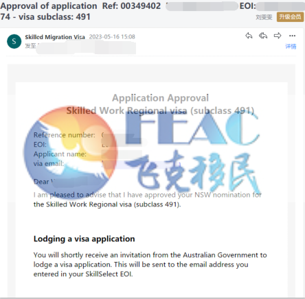 恭喜Mr. Hu NSW491州擔保正式獲邀!(境外)