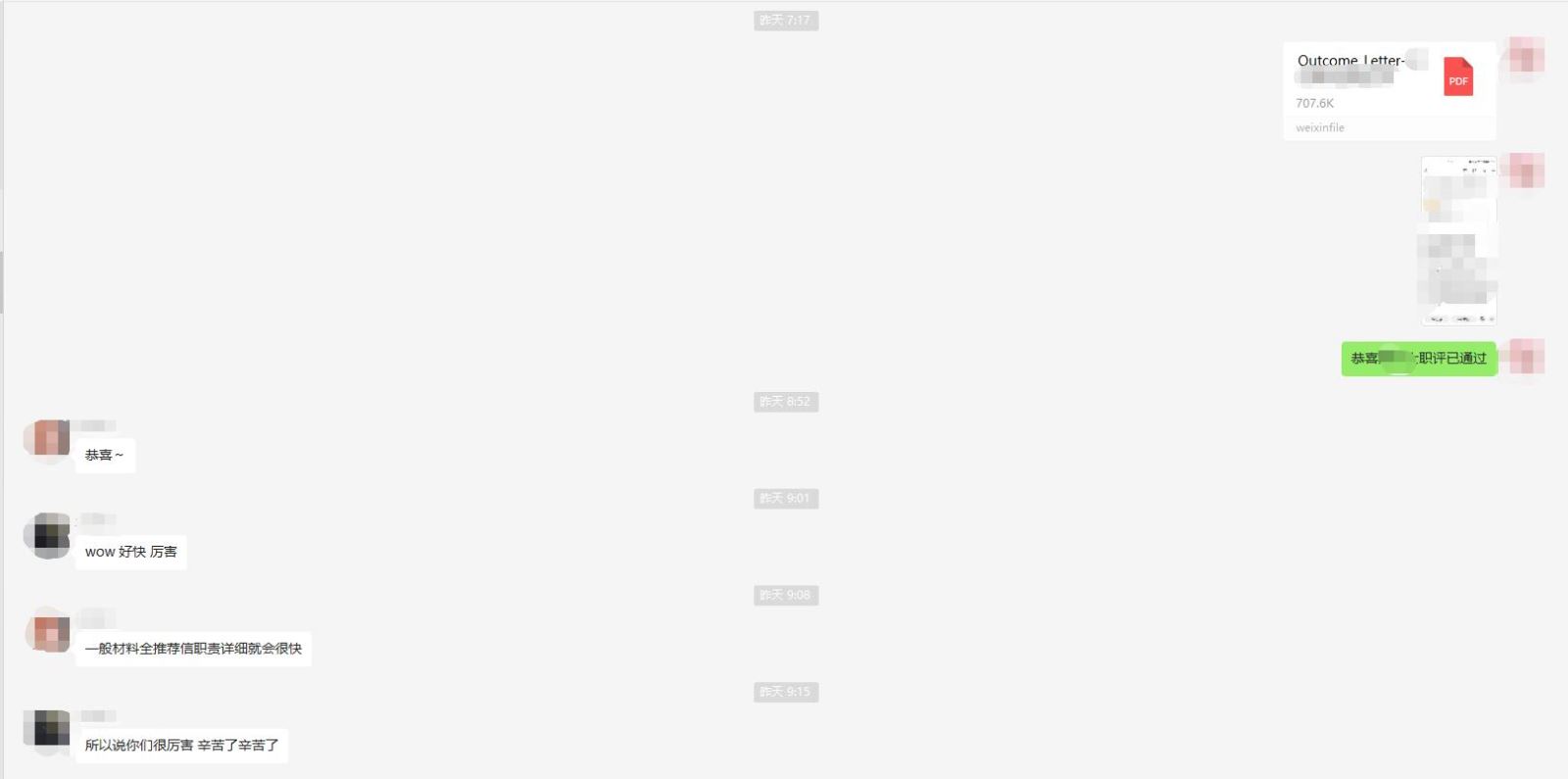 客戶2023年5月17日遞交加急,2023年5月19日通過。申請過程中,客戶積極配合準備材料,在文案專業流程操作下,飛速通過職業評估,中間無電調。