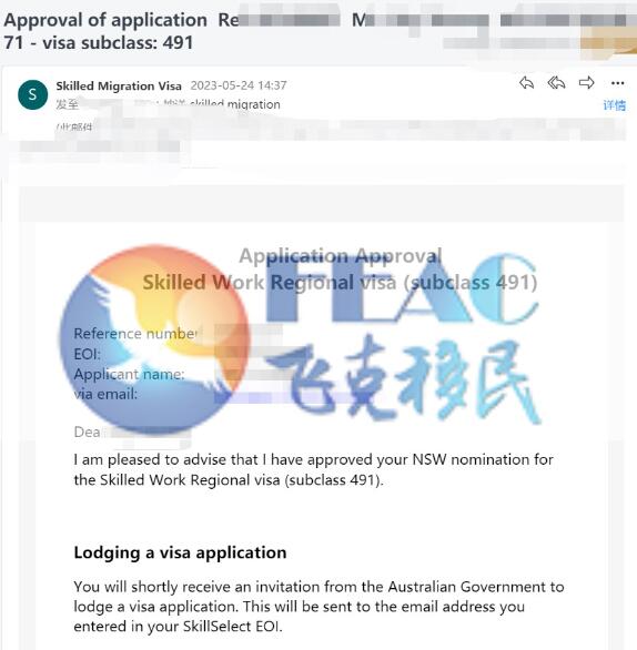 恭喜Mr. Xiao NSW491州擔保正式獲邀!