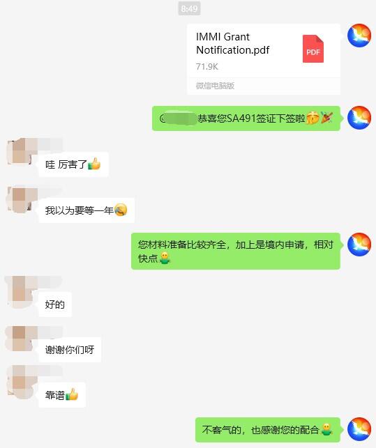 7月12日:恭喜Ms.?Xu?SA491簽證順利下簽!(境內)