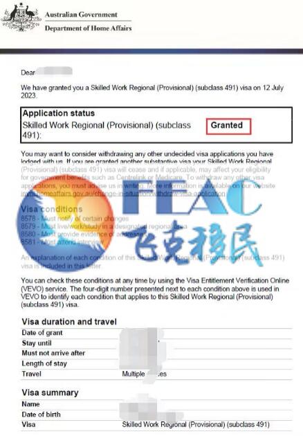 SA491EOI: 75分。該客戶2023.2.14遞交提名2023.2.23獲邀,2023.3.1遞交簽證,2023.7.12下簽。客戶材料比較復雜,且國內工作憑證較少,文案指導客戶準備職評/州擔/簽證遞交材料,簽證階段耐心指導客戶在澳洲完成體檢,并提供澳洲及國內的無犯罪公證,最后幫助客戶順利拿到下簽信。