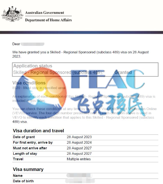 恭喜Mr. Hu NSW489簽證順利下簽!
