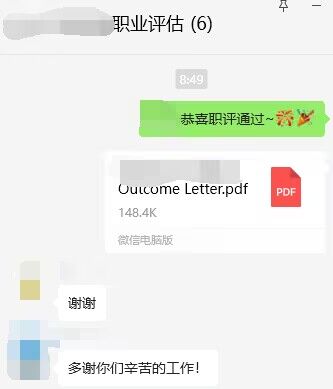 客戶經歷復雜,材料復雜,申請過程中,文案和客戶耐心溝通,指導客戶提供符合要求的材料,面試階段,文案耐心幫助客戶準備面試材料并模擬,最終客戶順利通過職評。
