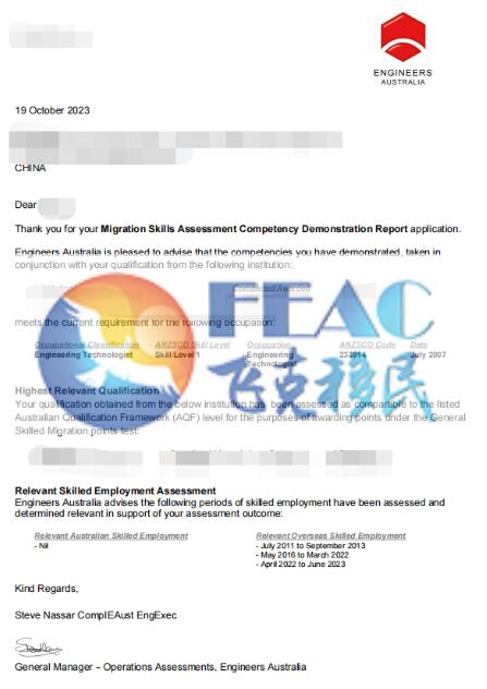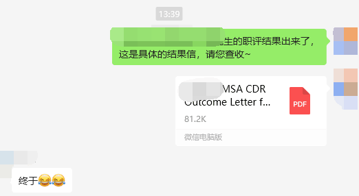 申請過程中客戶積極配合準備材料,客戶于2023.7.17遞交,2023.8.16收到補料,2023.10.19順利通過職業評估。客戶工作經歷較多,材料相對復雜,文案耐心指導客戶提供符合要求的的證明文件并撰寫詳細的推薦信等,整理遞交,最后幫助客戶順利通過評估!