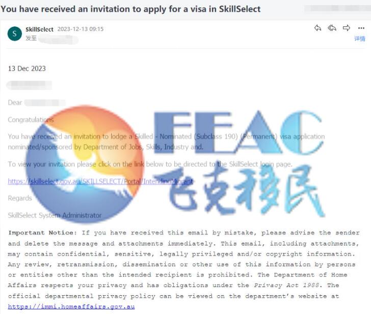 該客戶于2023年10月26日遞交EOI, 2023年11月29日預獲邀; 2023年12月4日遞交州擔保,2023年12月13日正式獲邀,分數95分(裸分90分, 州擔5分)。