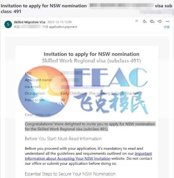 該客戶于2023年7月5日遞交,2023年12月15日預獲邀,分數80分(裸分65分+州擔15分)
