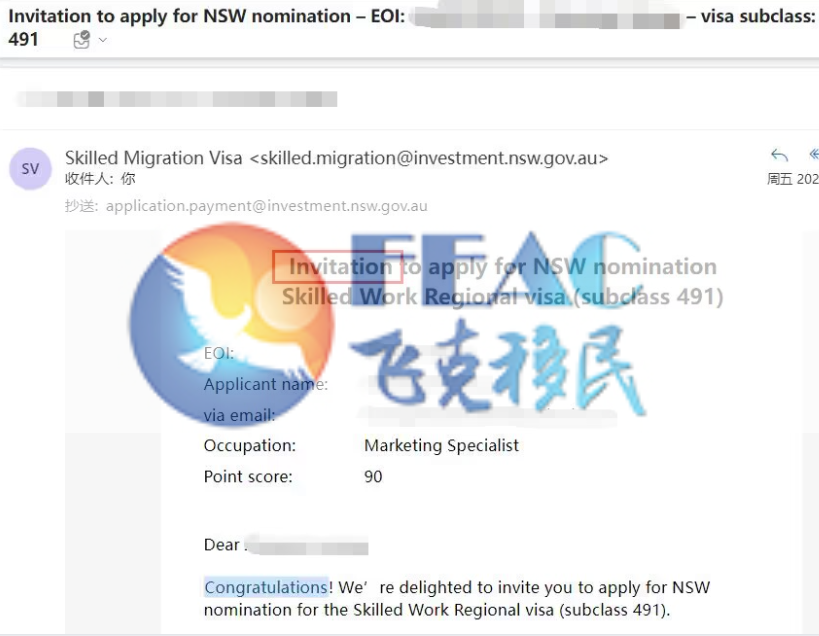 該客戶于2023年9月1日遞交EOI,2023年12月15日預獲邀,分數90分(裸分75分+州擔15分)