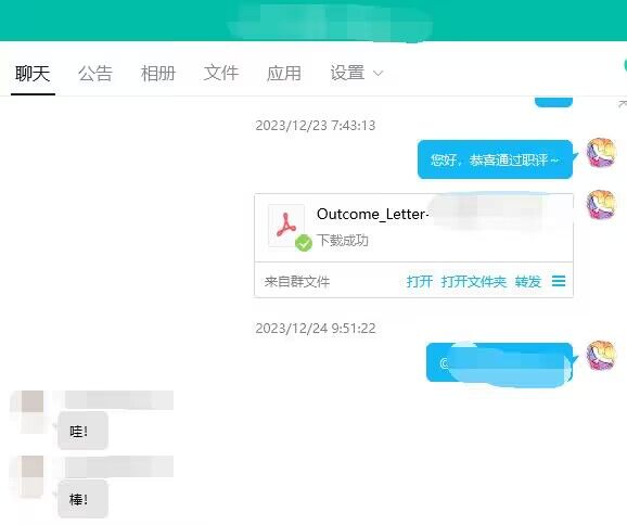 客戶有多份工作,文案指導(dǎo)客戶準(zhǔn)備相應(yīng)材料,細(xì)化推薦信內(nèi)容,補(bǔ)充核心職責(zé),2023年9月8日遞交不加急職評,2023年12月21日職評通過。