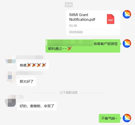恭喜Ms. JIANG 600簽證順利下簽!(境外)