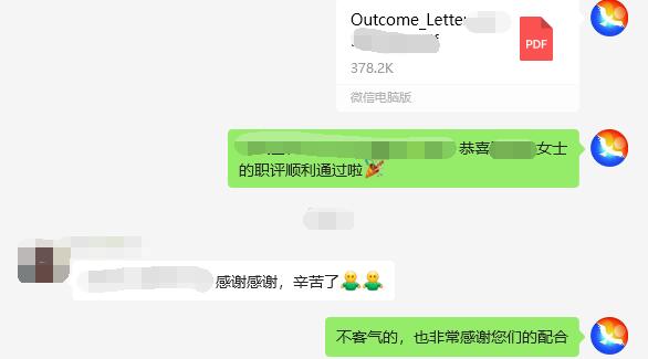 該客戶于2023.8.7遞交,2023.12.28通過。客戶在職評材料準備過程中積極配合文案,按照文案的指導細心準備素材,最后文案仔細核對材料并整理遞交,最終幫助客戶順利通過職評。