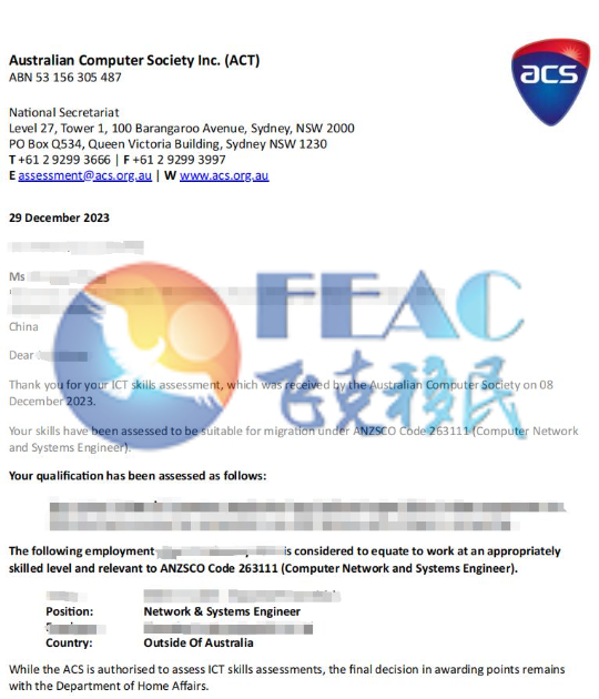 職業:Computer Network and Systems Engineer (ANZSCO Code 263111)