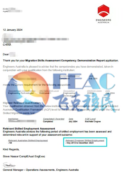 該客戶于2024.1.9遞交,2024.1.12評估通過。申請過程中,文案耐心指導,仔細撰寫審核材料,客戶高度配合,最終順利通過職業評估。