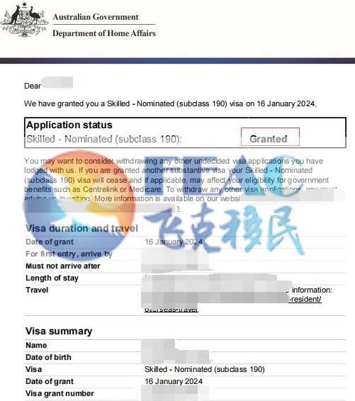 1月16日:恭喜Ms. ZHOU ? NSW190簽證順利下簽!(境外)