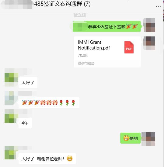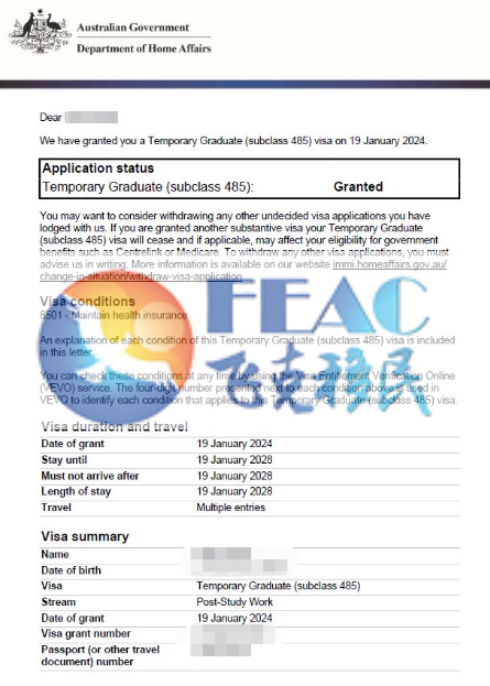 恭喜Mr. Zhang 485簽證順利下簽(境外)