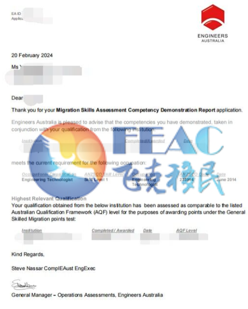 申請過程中客戶積極配合準備材料,客戶于2023.12.04遞交,2024.2.20順利通過職業評估。客戶材料相對復雜,文案耐心指導客戶提供符合要求的的證明文件并整理遞交,最后幫助客戶順利通過評估!
