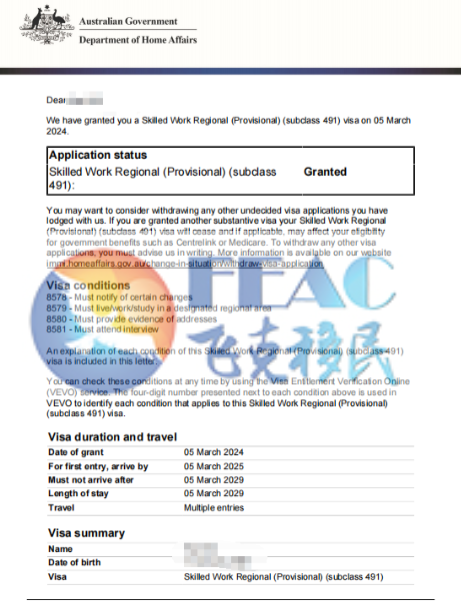恭喜Mr. xu 491簽證順利下簽。(境外)