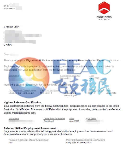 職業(yè):Engineering Technologist (ANZSCO Code: 233914)