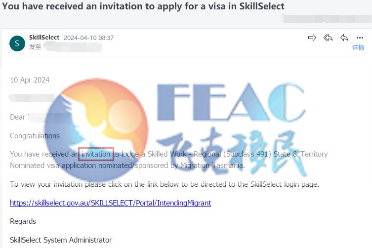 該客戶2024.2.23遞交EOI, 2024.3.26遞交ROI, 2024.3.26預獲邀;2024.3.29遞交提名,2024.4.10正式獲邀,拿到簽證遞交資格。材料準備過程中,客戶積極配合文案,文案耐心整理客戶文件,同時準備好雇主電調模擬稿,最終幫助客戶順利獲邀。