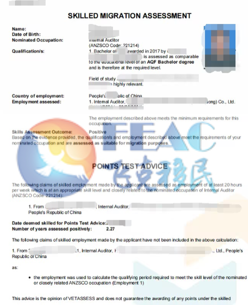 職業:Internal Auditor (ANZSCO Code: 221214)