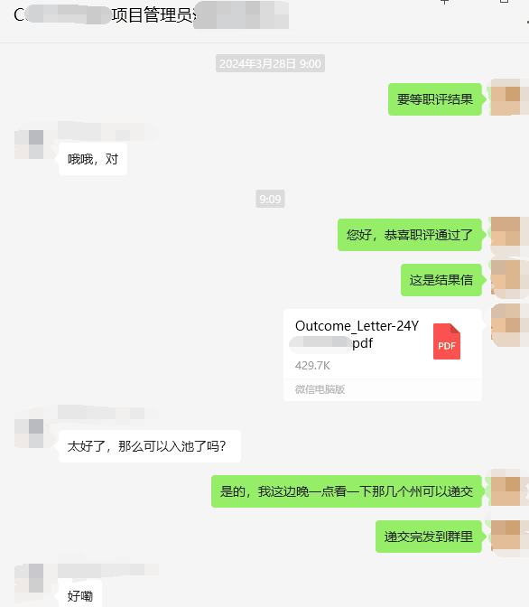該客戶于2024.2.2遞交,2024.4.19通過評估。申請過程中客戶積極配合準備材料,文案撰寫詳細推薦信并遞交申請,最后幫助客戶無電調順利通過職評。