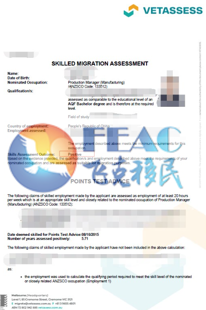 職業(yè):Production Manager (Manufacturing) (ANZSCO Code: 133512)