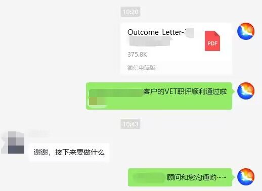 該客戶2024年4月30日遞交職評,2024年5月8日順利通過職評。申請過程中,客戶積極配合準備材料,文案耐心指導(dǎo)收集文件,制定材料遞交方案,最終無電調(diào)順利通過職評。