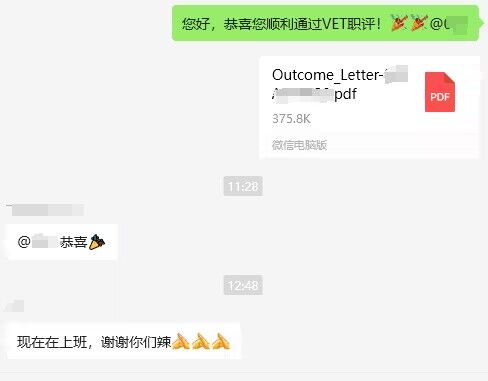 5月21日:恭喜Mr. Fu VET職評(píng)順利通過(guò)!