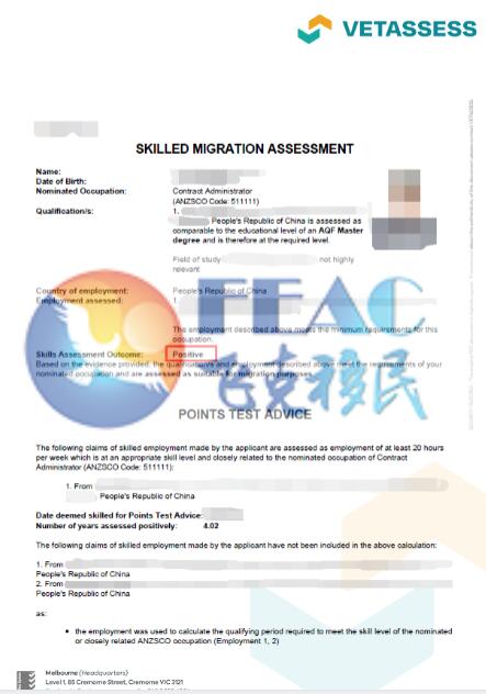 職業(yè):Contract Administrator (ANZSCO Code: 511111)