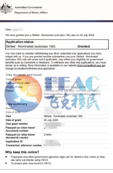 該客戶2022.11.15遞交EOI(85分),2023.3.9獲邀,2023.4.1遞交簽證,文案積極指導客戶準備相關材料,并整理遞交,持續上傳補充更新的文件,最終于2024.7.29順利下簽!