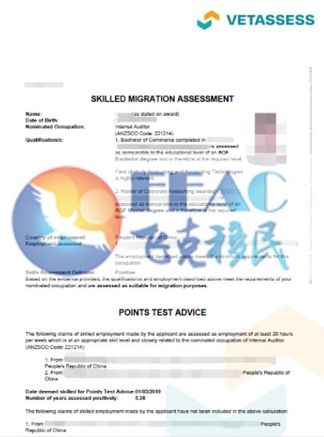 職業:Internal Auditor(ANZSCO Code: 221214)