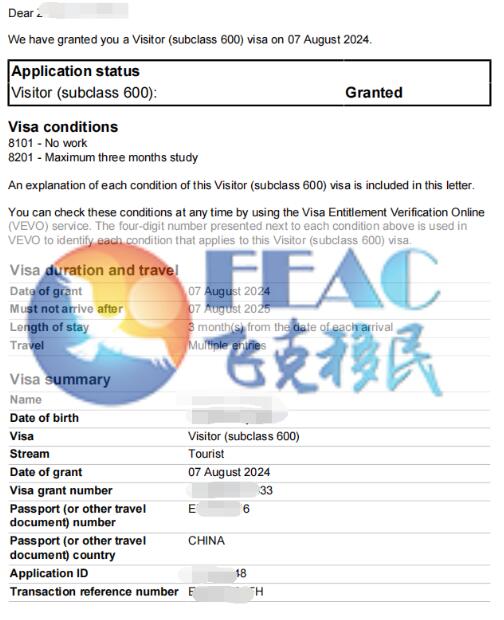 Mr. LI 2024.7.24遞交,2024.8.7通過(guò)。該客戶連續(xù)十多年的穩(wěn)定工作,文案指導(dǎo)客戶提供社保,工資流水等證明收入和工作,并撰寫(xiě)解釋信等證明回國(guó)約束力,幫助客戶下簽。