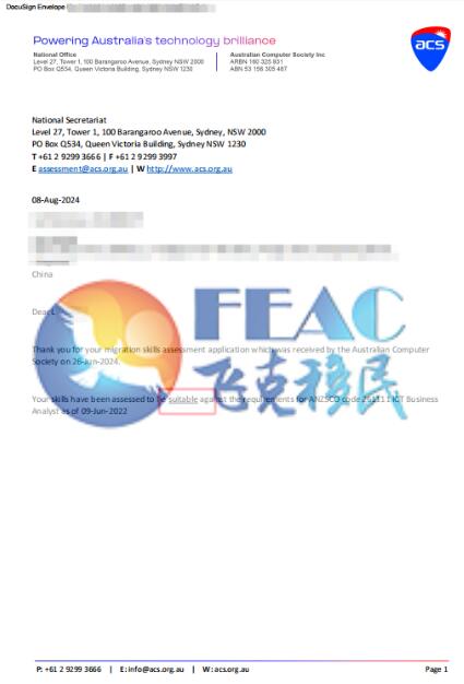 職業: ICT Business Analyst(ANZSCO Code 261111);System Analyst(ANZSCO Code 261112)該客戶2024年6月20日遞交,2024年8月8日通過。材料準備過程中,客戶非常配合文案,積極提供相關素材,文案耐心專業地為客戶準備材料遞,制定材料遞交方案,最終順利通過評估。