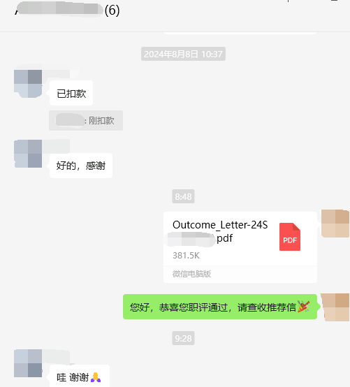 該客戶于2024.8.5遞交,2024.8.14通過評估。申請過程中客戶積極配合準備材料,文案撰寫詳細推薦信并遞交申請,最后幫助客戶無電調順利通過職評.