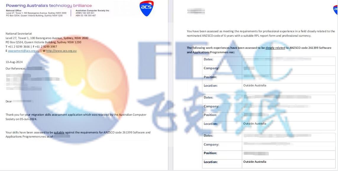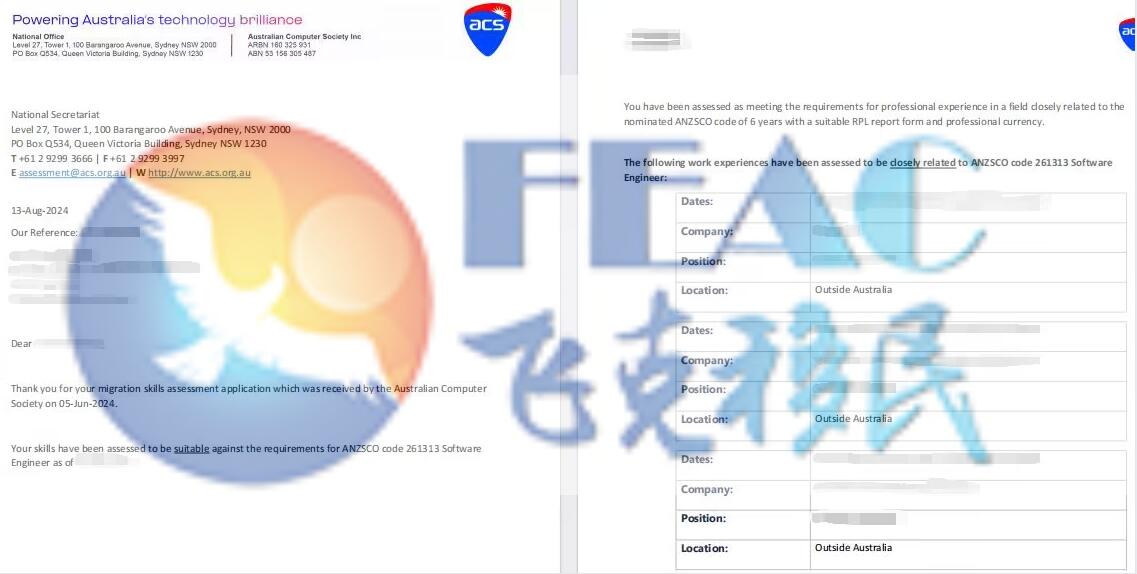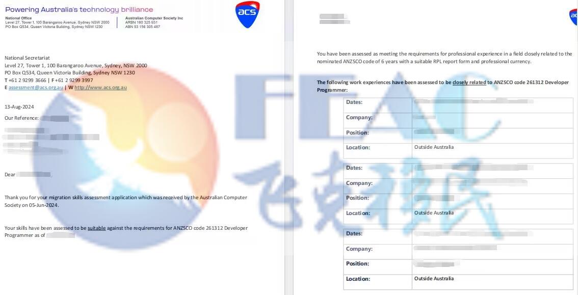 職業: Developer Programmer(ANZSCO Code 261312);Software Engineer(ANZSCO Code 261313);Software and Applications Programmers nec(ANZSCO Code 261399) 該客戶2024年6月5日遞交,2024年8月13日通過。申請過程中,客戶積極配合準備材料,文案耐心指導收集文件,制定材料遞交方案,最終順利通過評估。