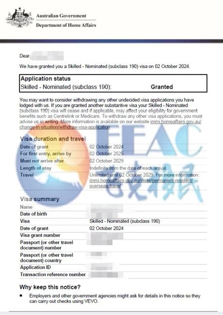 10月2日:恭喜Ms. Chen ?VIC190簽證順利下簽?。ň惩猓?/span>