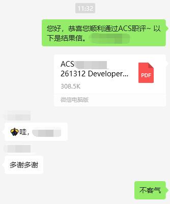 恭喜Ms. Hu ACS職評(píng)順利通過!