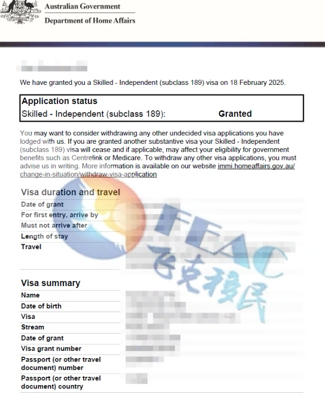 恭喜Ms. Yu 189簽證順利下簽!(境外)