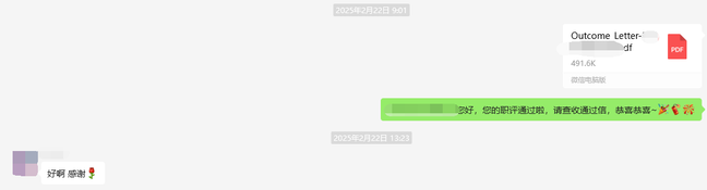 該客戶2025.2.17遞交,2025.2.20評估通過。申請過程中,客戶積極配合準(zhǔn)備材料,文案耐心指導(dǎo),及時檢查篩選客戶提供的材料,并撰寫詳細(xì)推薦信仔細(xì)梳理上傳,最終順利通過職業(yè)評估。