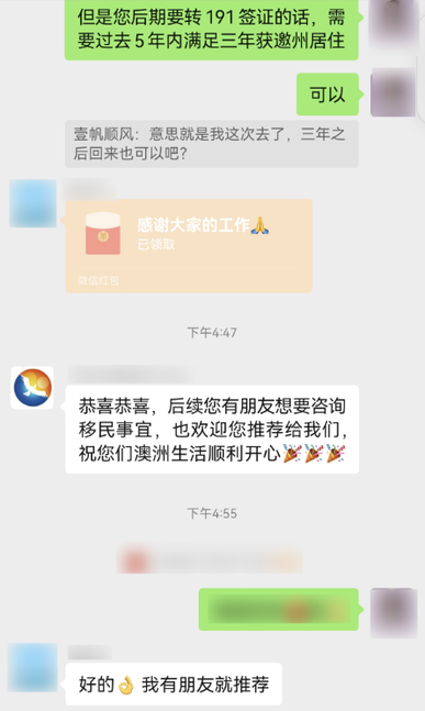 4月28日:恭喜Ms. Hu 一家三口491簽證順利下簽!