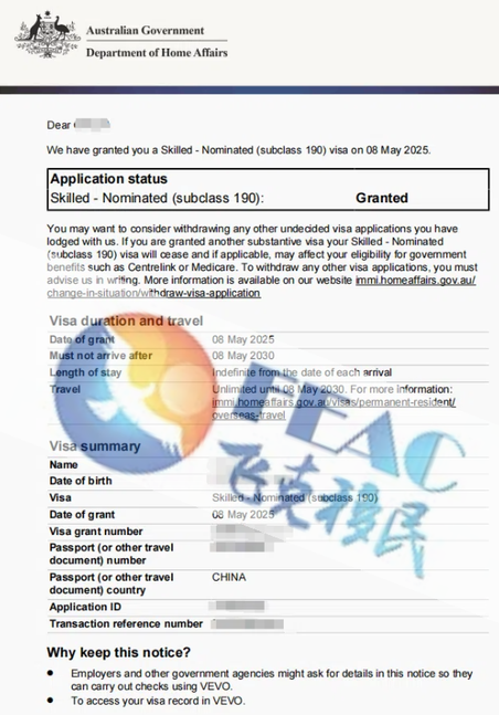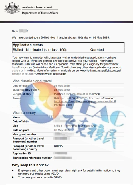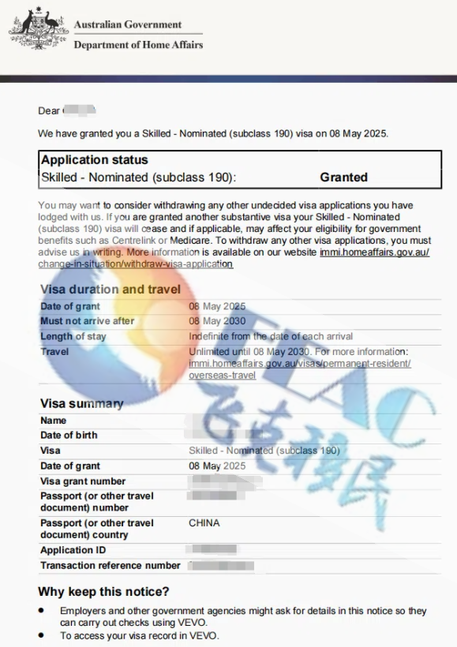 該客戶于2024.2.26遞交簽證申請, 2025.5.8下簽。申請過程中,文案指導客戶準備相應材料,細心整理客戶的所有材料并完成遞交,最終客戶無電調、無補料順利下簽!