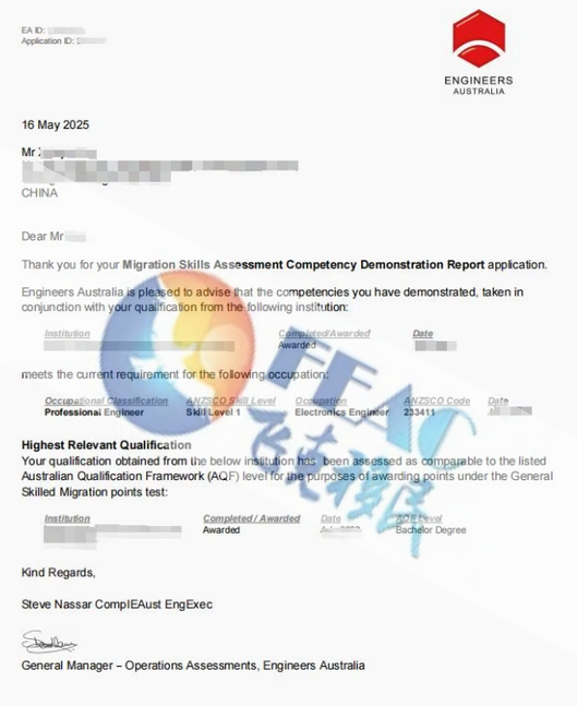 職業(yè): Electronics Engineer(ANZSCO Code 233411)