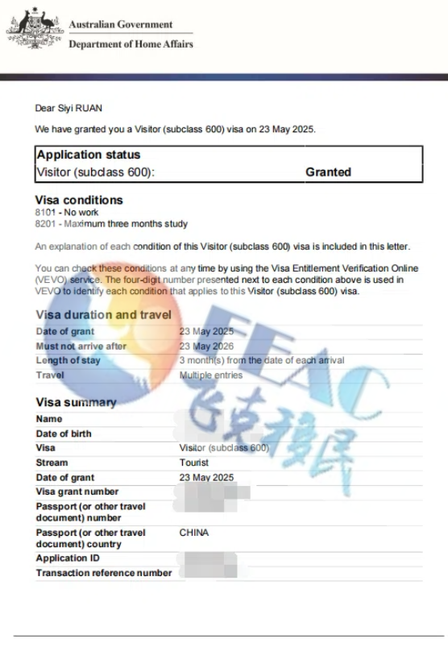 該客戶2025.5.13遞交旅游簽,2025.5.23順利下簽。