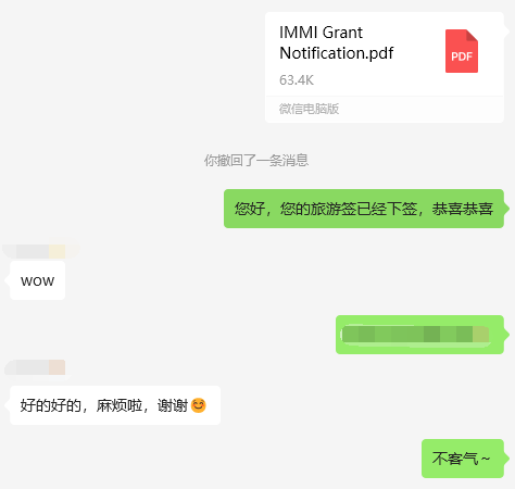 申請過程中,文案指導客戶提供收入等證明材料,規劃遞交方案,整理和撰寫相關材料并完成遞交,最終順利幫助客戶拿到簽證。