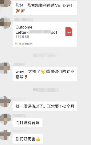 客戶于2025年6月30日遞交申請,2025年7月9日通過。在準備過程中,文案指導客戶提供職評材料,并為客戶撰寫相應的推薦信,突出核心職責,最終客戶無補料無電調順利通過職評。