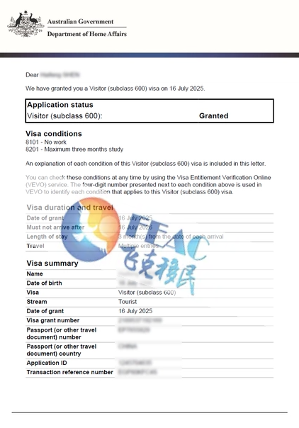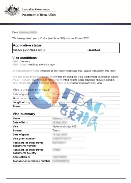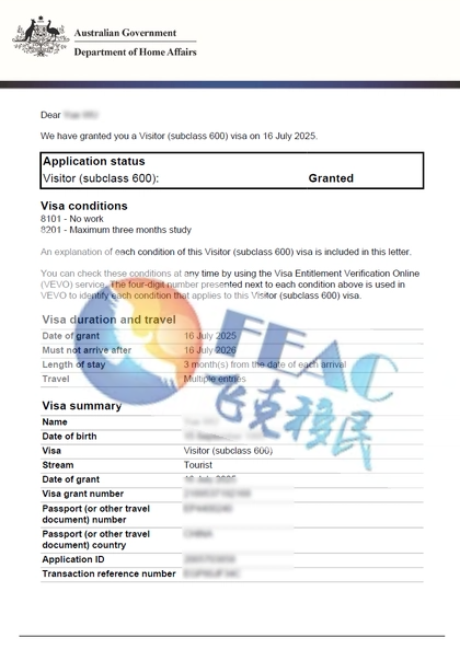 該客戶2025.6.27遞交旅游簽,2025.7.16順利下簽。