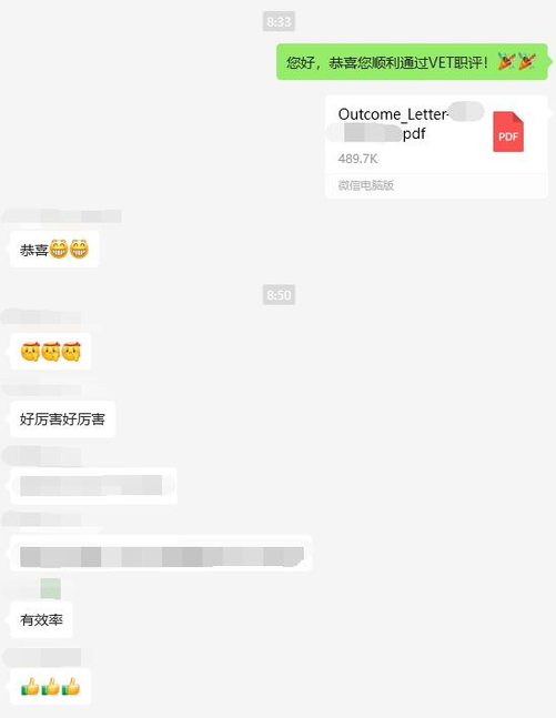 客戶于2025年7月25日遞交申請,2025年7月31日通過。申請過程中,文案耐心指導客戶準備相應的材料,嚴謹核對文件并撰寫詳細的推薦信,最終客戶無補料無電調順利通過職評。