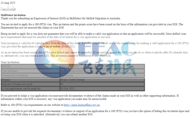 該客戶于2023年10月25日遞交EOI,2025年8月21日正式獲邀,EOI分數: 95