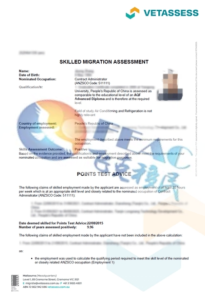 職業: Contract Administrator (ANZSCO Code: 511111)